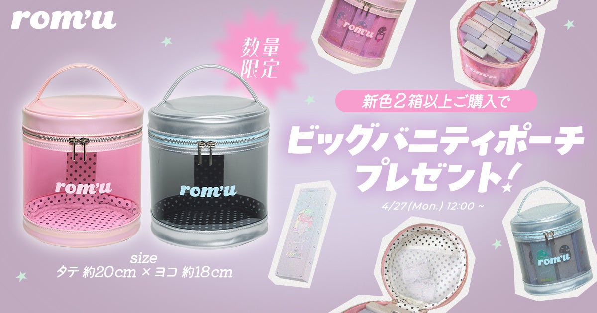 新色を2箱以上ご購入いただいた方に、数量限定でビッグバニティポーチをプレゼント。
