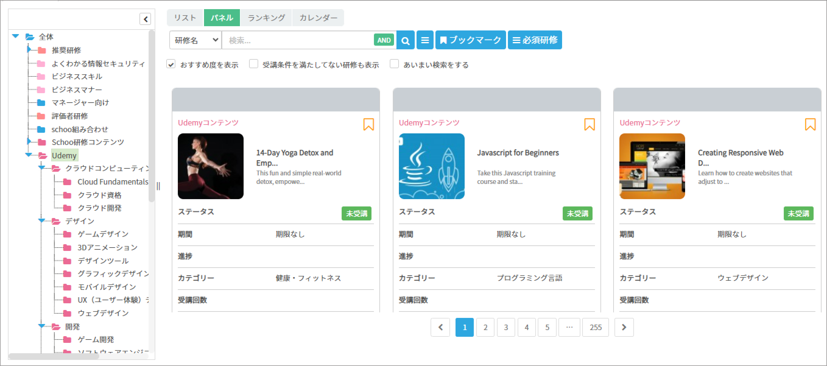 <タレントパレット研修管理機能Udemy連携画面イメージ>