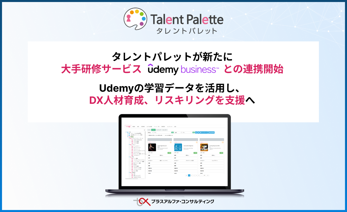 タレントパレット、新たに大手研修サービス「Udemy Business」との連携開始。Udemyの学習データを活用し、DX人材育成、リスキリングを支援へ