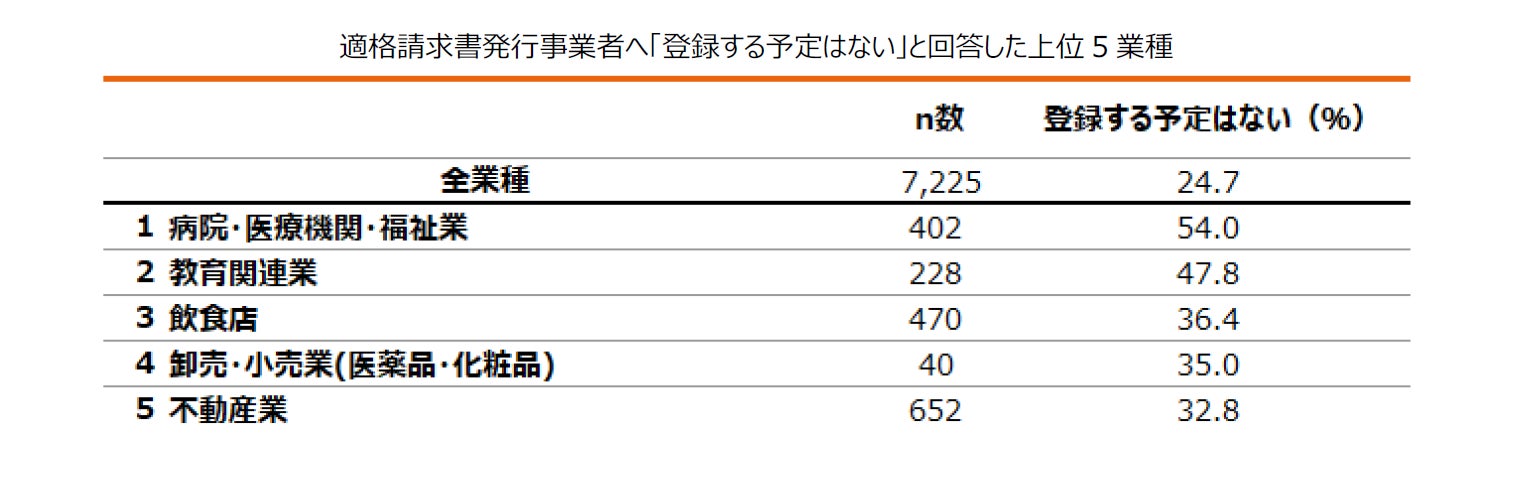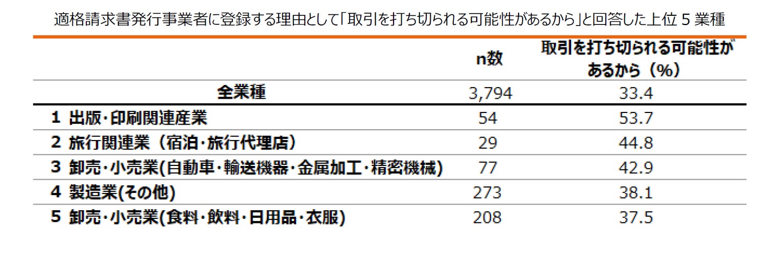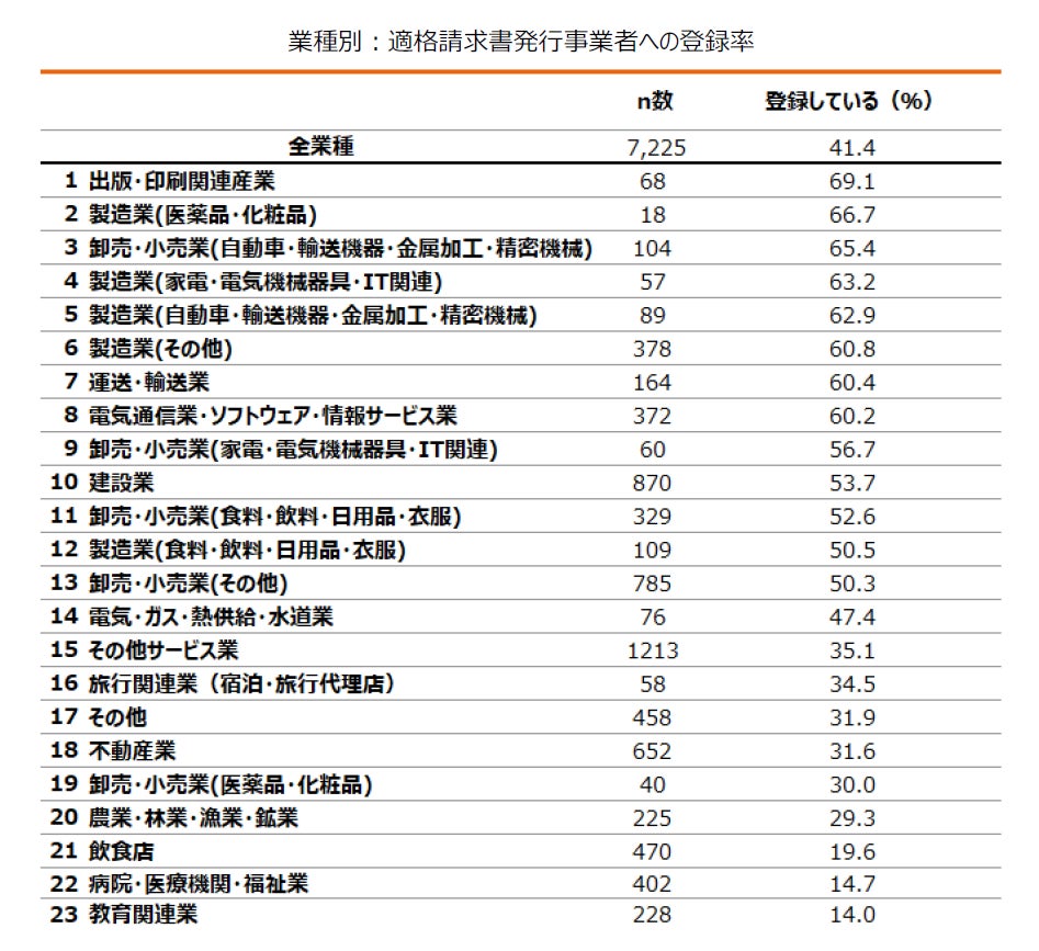 中小企業経営者の約4人に1人が適格請求書発行事業者として登録しない予定。登録している業種1位は出版・印刷関連産業(69.1%)