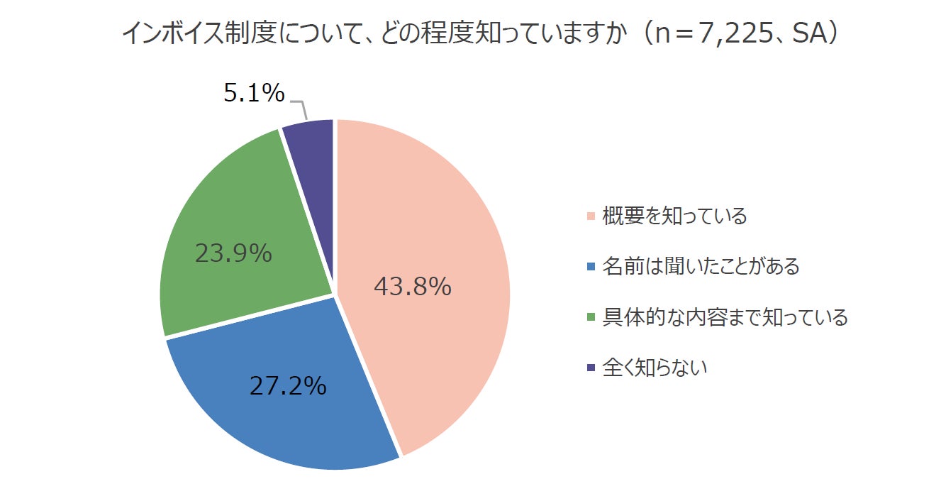 インボイス制度について「具体的な内容まで知っている」中小企業経営者は23.9%にとどまり、5.1%が「全く知らない」と回答