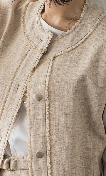 極細の麻調ポリエステルの糸を使用し、合繊ながら