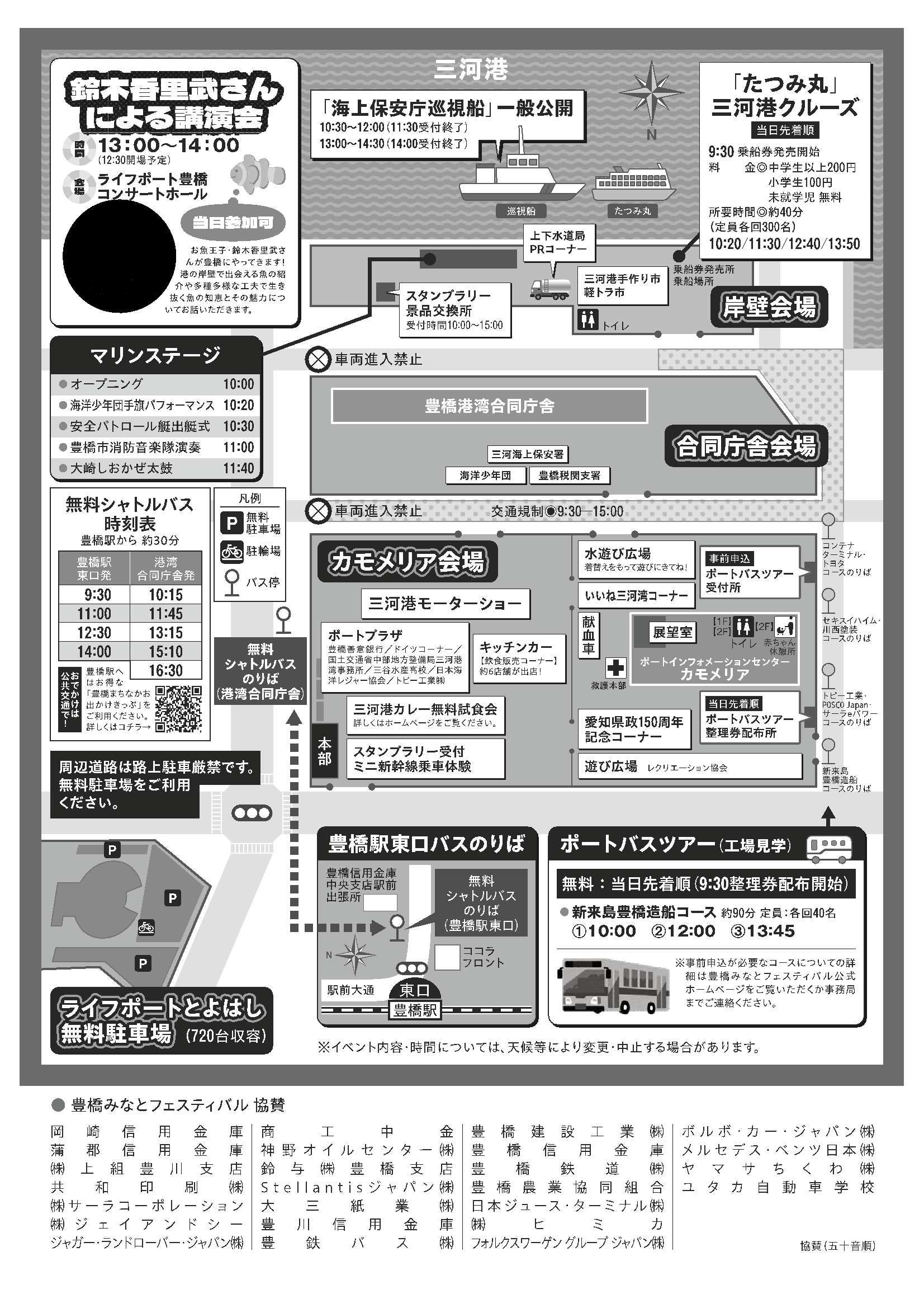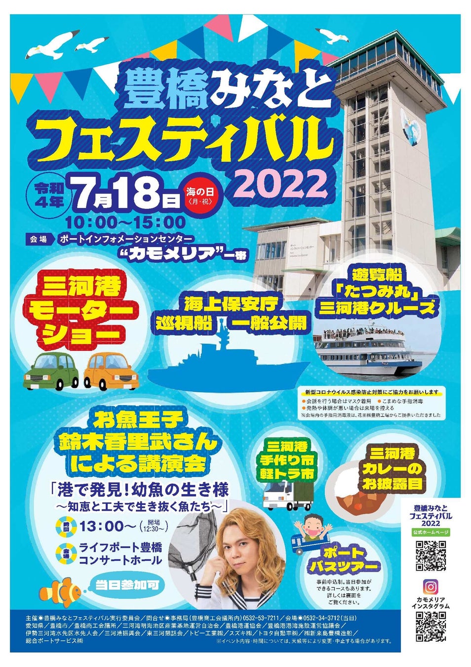 豊橋みなとフェスティバルは、港に親しみを持ってもらい、港の重要性や役割、港湾整備への理解を深めてもらうことを目的に実施しています。毎年、海の日に愛知県豊橋市のポートインフォメーションセンター「カモメリア」周辺で開かれています。