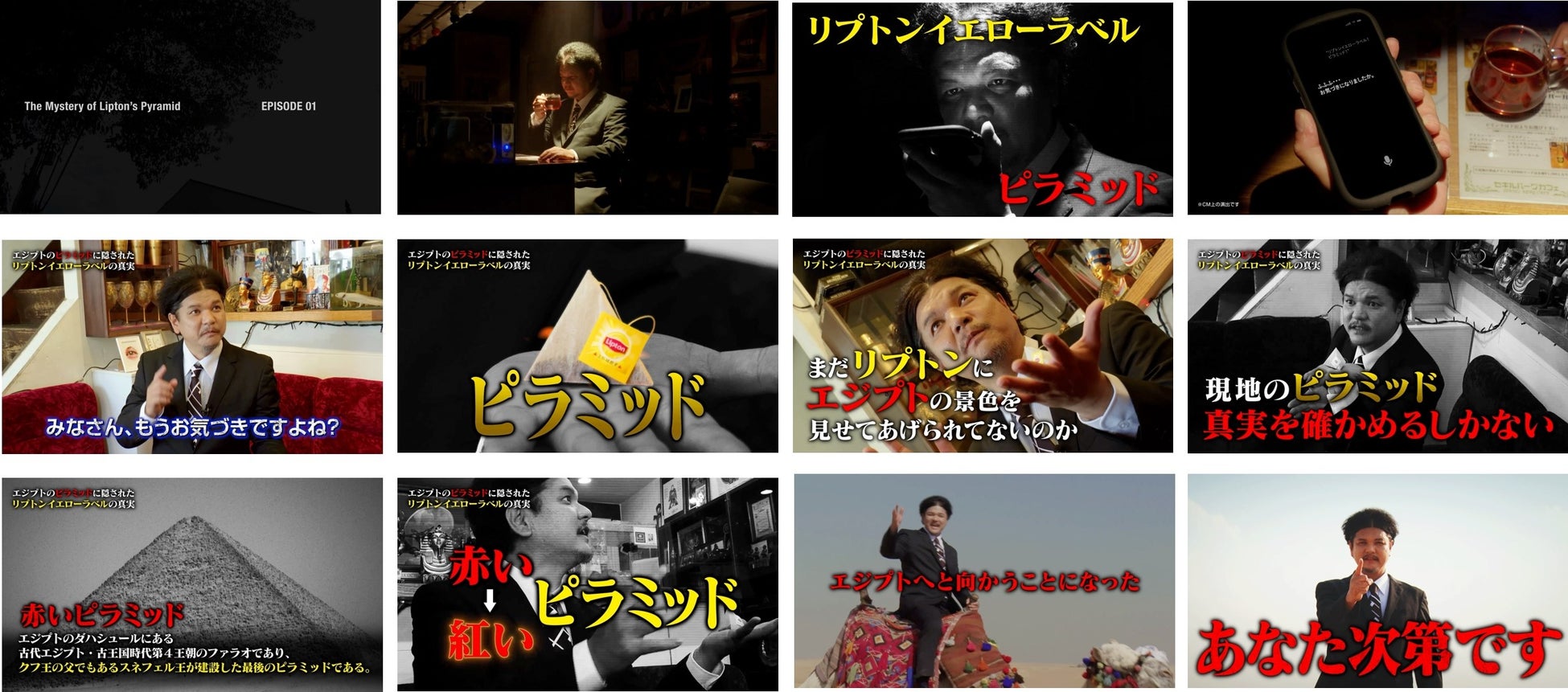 エピソード1では、ティータイムを楽しむ関さんがリプトンイエローラベルのピラミッド®型ティーバッグの重大な秘密に気づき、リプトンとピラミッドの隠された真実を探るため、エジプトの「赤いピラミッド」を目指すところから始まります。一体どんな結末が待っているのか、ついにリプトンとピラミッドによる新たな紅茶時代が幕を開けます。ぜひお見逃しなく!
