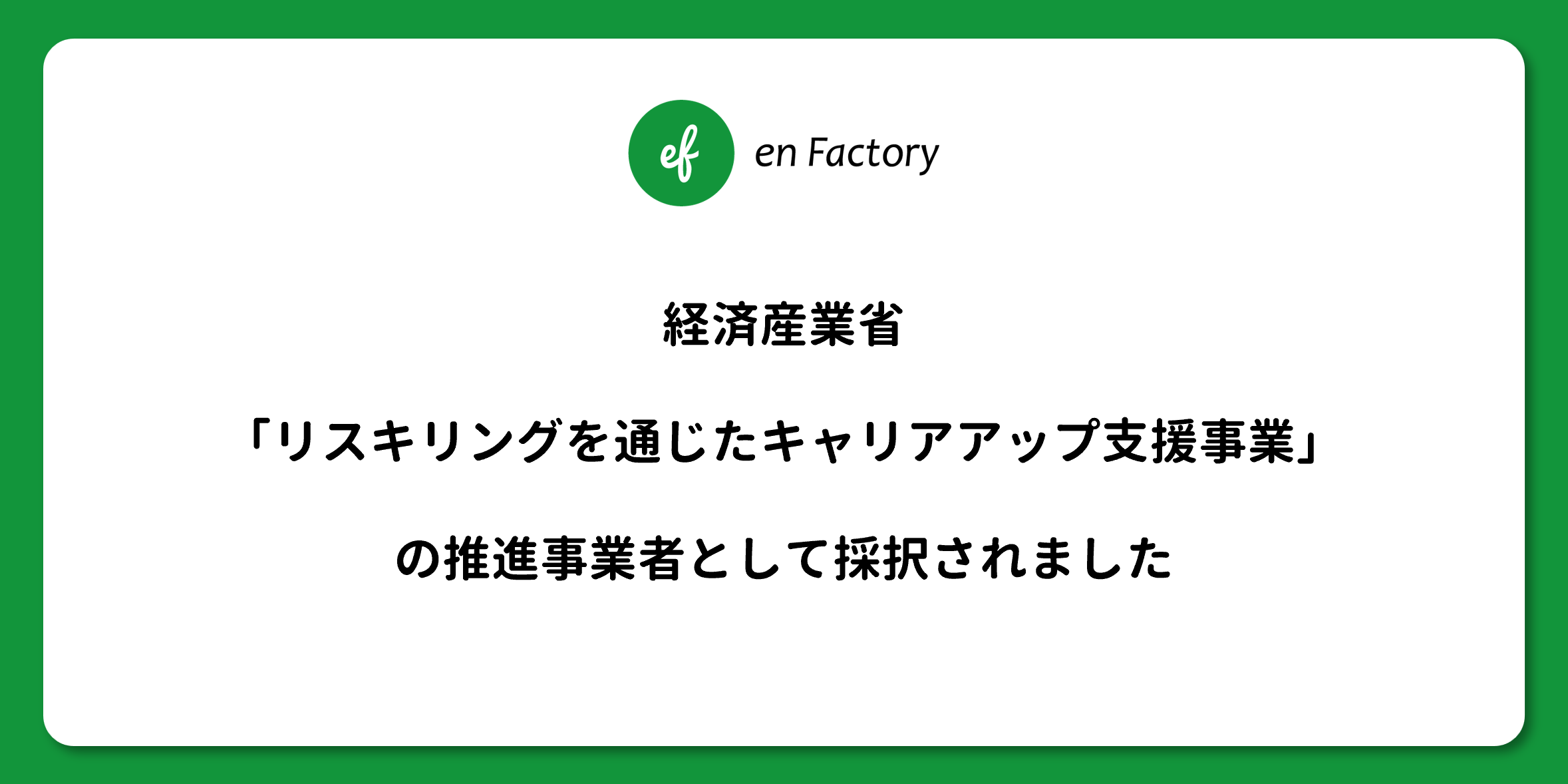 エンファクトリーが、経済産業省「リスキリングを通じたキャリアアップ支援事業」推進事業者として採択されました。2023年8月より、個人向けリスキリングプログラム「ベンチャー留学」を提供開始!