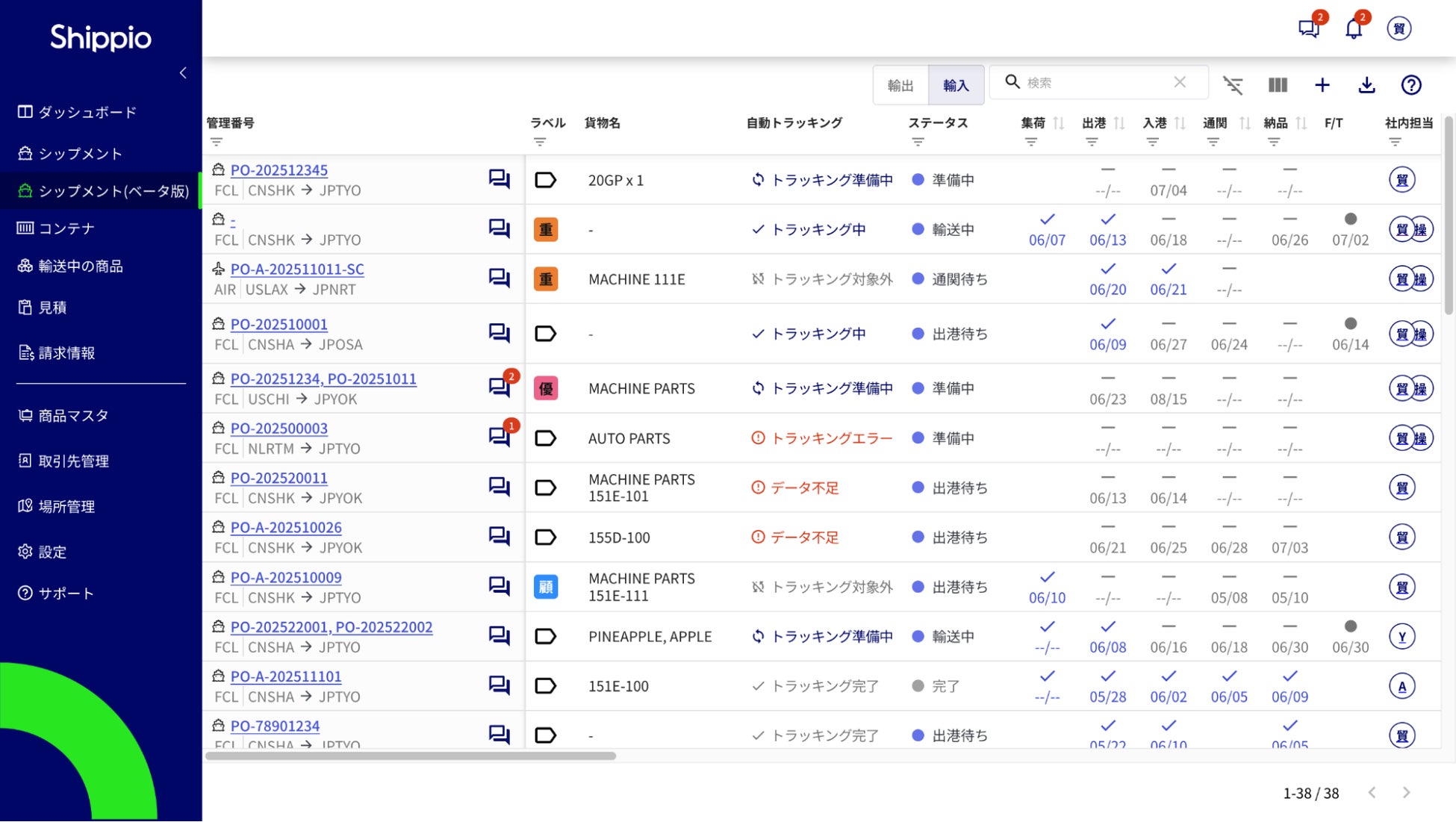 貿易DXを推進するShippio Platform、フルカスタマイズ可能な案件一覧を公開