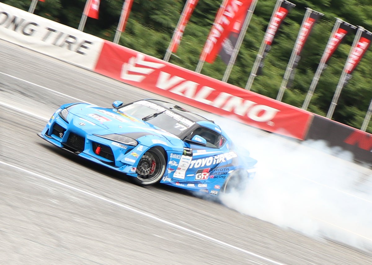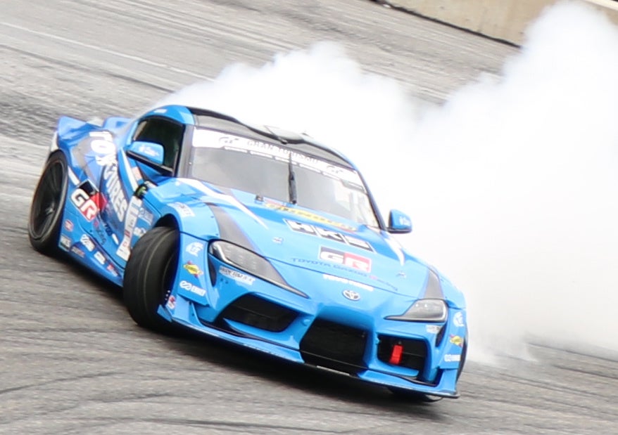 先行は自分のベストの走りをし、後追いは先行の車両に合わせたドリフトをすることが求められます。後追いが先行と同等かそれ以上の角度をつけて、相手のインに入った状態でドリフトを続けられれば勝ち。また、先行が後追いを引き離したり、よりドリフトの角度が深く、ドリフトの飛距離が長ければ先行の勝ちとなります。その際、スピン、アンダーステアをはじめ、挙動の乱れなども減点要素になります。遅い相手には、遅いスピードでドリフトを合わせないといけないため、必ずしも速いクルマ、パワーのあるクルマが勝てるとは限りません。