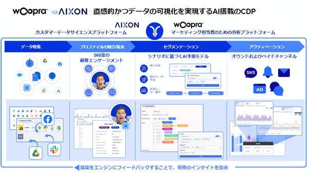 「AIXON」および付属するソリューションにWoopraを追加することで、 企業はIPA (インテリジェント・プロファイル・アクイジッション )を実現し、リアルタイムのマーケティング・キャンペーン分析や予算自動調整により、ユーザー獲得戦略とマーケティング費用を最適化できます。マーケターはAI実装マーケティング・キャンペーンを効果的なものにするため、戦略的施策立案に集中することができます。