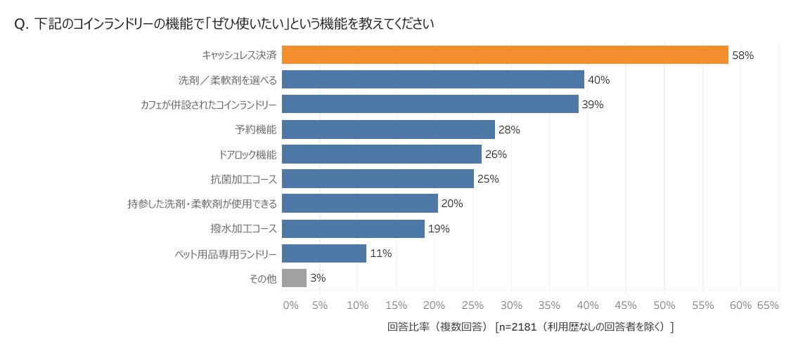 5. 58%がコインランドリーでのキャッシュレス決済を「ぜひ使いたい」と回答