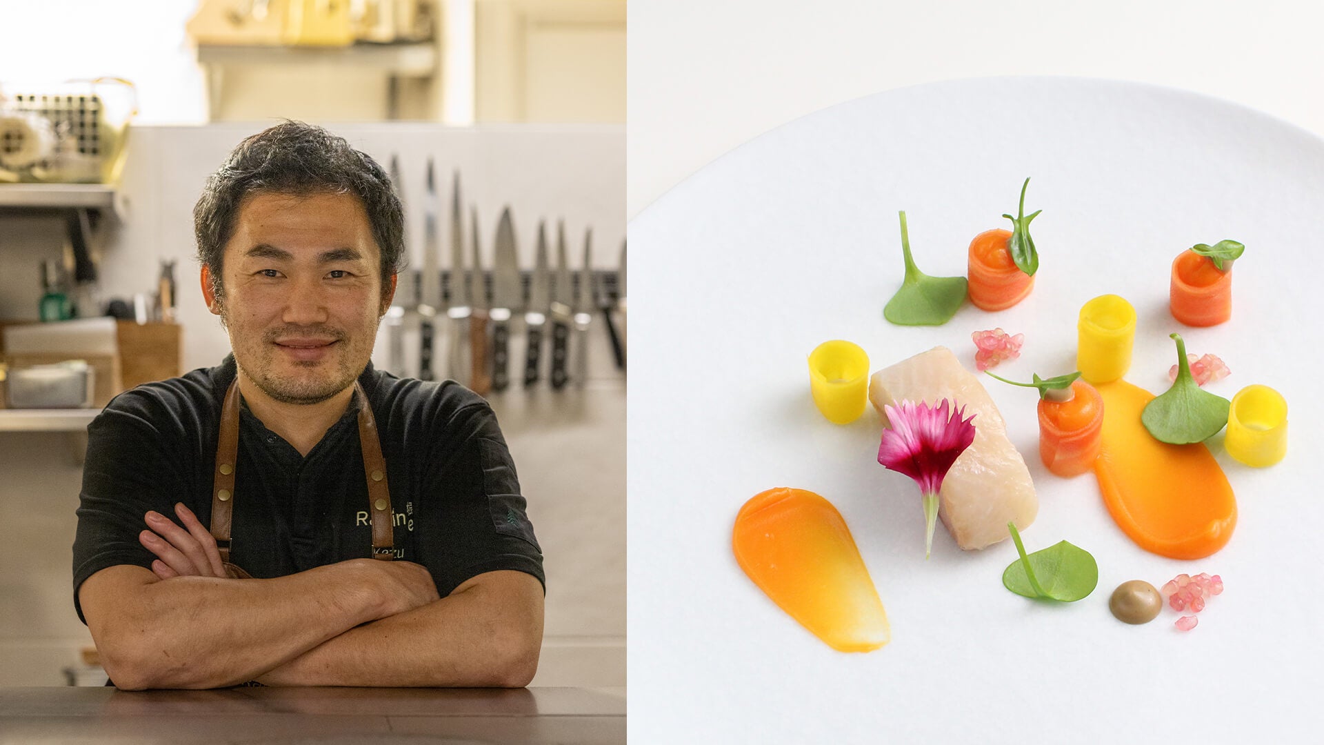 1985年福岡県福岡市出身の田中一行シェフ。ホテルニューオータニ佐賀から料理人としての人生がスタート。2006年にフランスへ渡り、各地での修業を経て2015年フランス・シャンパーニュ地方ランスに「Restaurant Racine」をオープン。日本人ならではのバランス感覚から生み出す一皿はまさに「驚き」の連続。味や見た目の美しさだけでなく、これまで味わったことのない味わいを追求し続けたことで、ゴ・エ・ミヨ誌で「Grand de demain」を日本人史上最年少、さらにミシュラン日本人オーナーシェフとしても史上最年少で2つ星獲得。今では地元フランスの美食家に愛され、世界中の批評家たちを虜にしています。