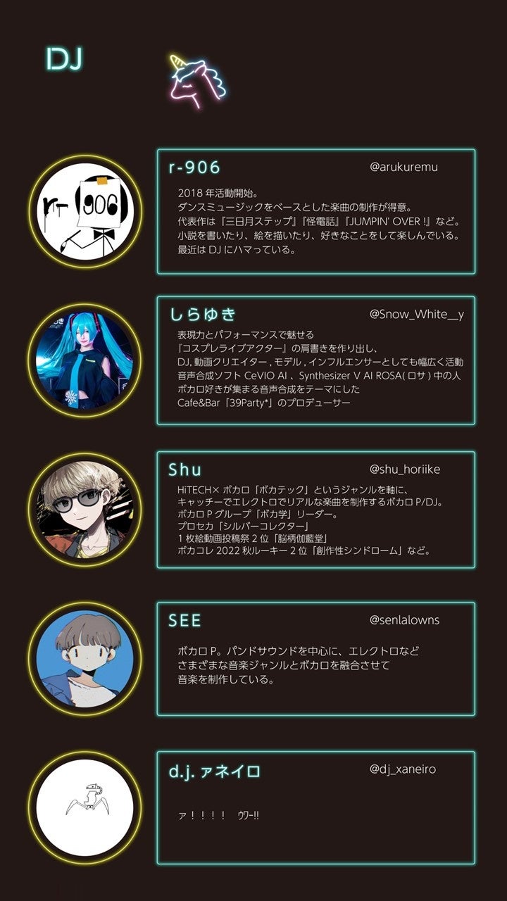 そんな気持ちに共感してくれた、DJ、ボカロP、シンガー、動画クリエイターとして活躍する20組の超豪華出演者によるステージが叶いました。