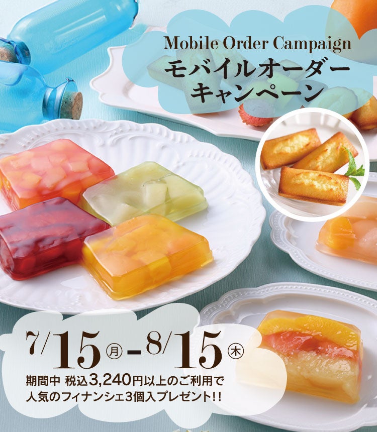・対象条件 :キャンペーン期間中、公式オンラインストアの店舗受取ページより、税込3,240円以上の事前決済によるご予約をいただいたお客様対象。ご来店時の商品お渡しの際に『フィナンシェ 3個入』をプレゼント。