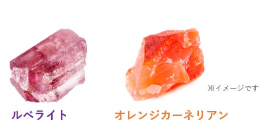 やわらかな透明感をもつ新色「ルベライト」と「オレンジカーネリアン」は、天然石の名称から名付けられています。