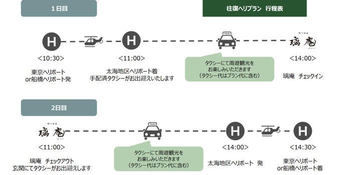 AirX、ヘリチャーター付き鴨川温泉「璃庵」宿泊プランを限定販売