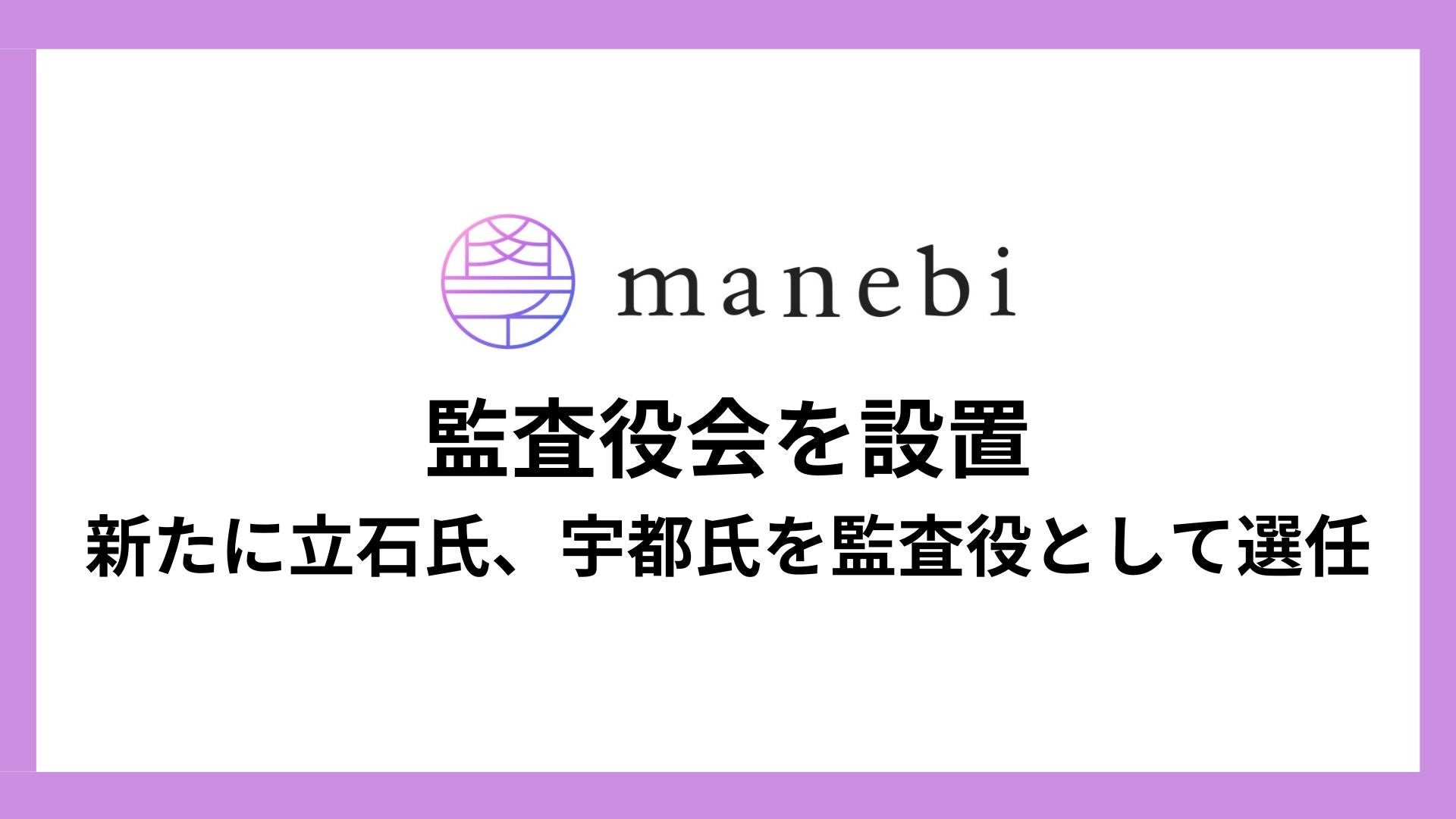社員教育システムを展開する株式会社manebi、コーポレートガバナンス強化のため監査役会を設置し、新たに立石氏、宇都氏を監査役として選任