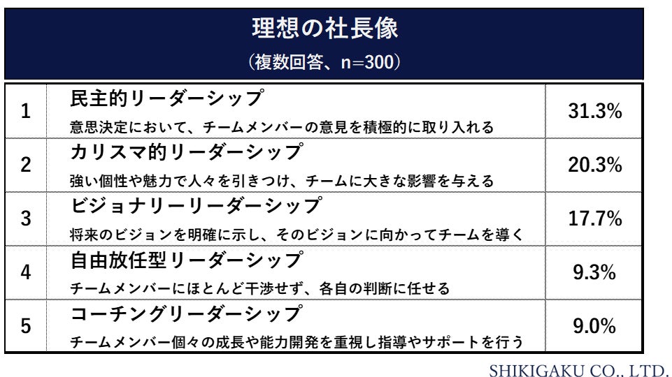 「民主的リーダーシップ」31.3%、「カリスマ的リーダーシップ」20.3%