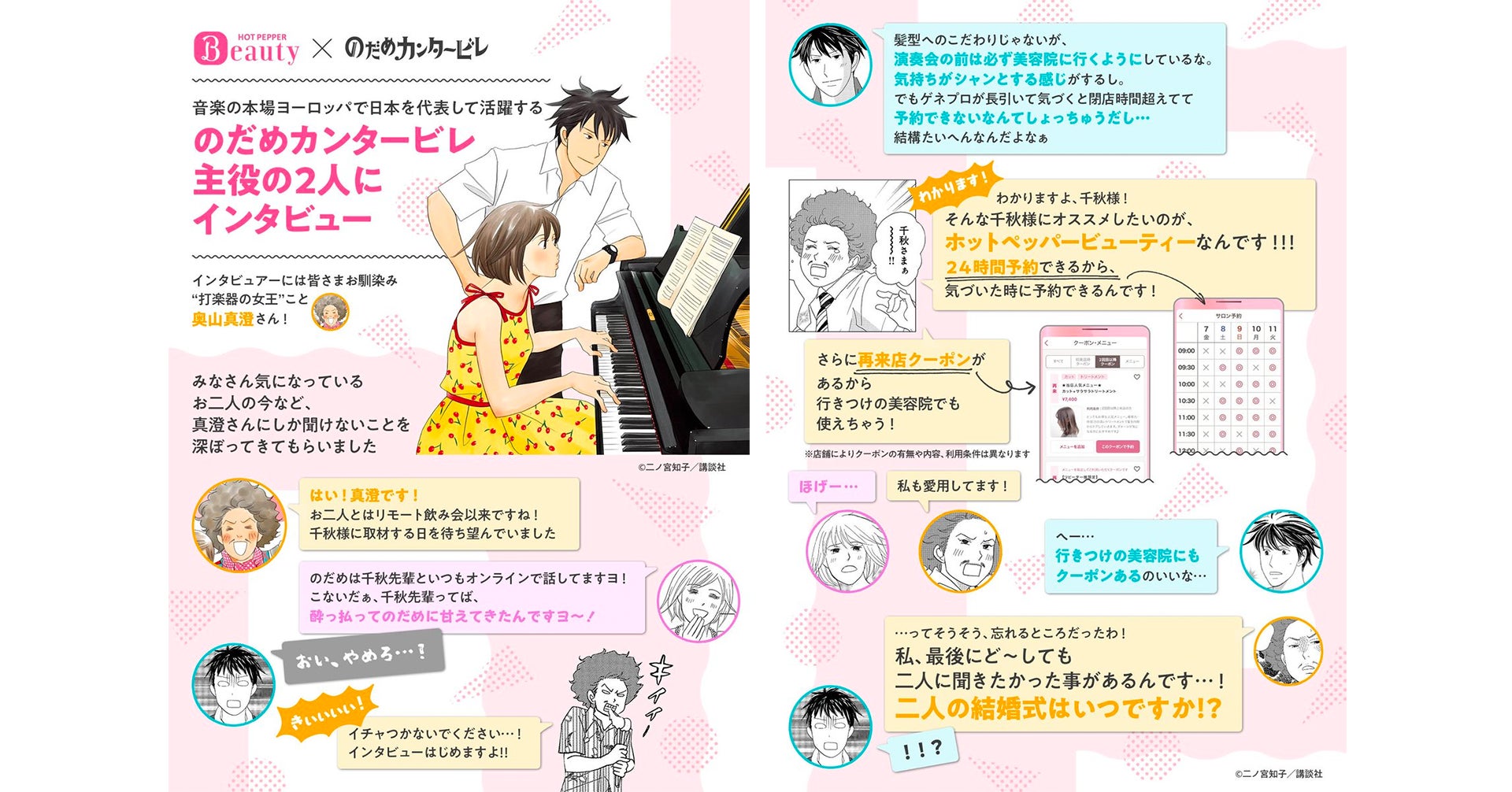 女性漫画雑誌『Kiss』(講談社)にて2001年〜2010年まで連載。地上波でのドラマ化や映画化などで一世を風靡した人気音楽漫画『のだめカンタービレ』(著・二ノ宮知子)と国内最大級のヘアサロン ・リラク&ビューティーサロン検索・予約サイト『ホットペッパービューティー』(株式会社リクルート)がコラボしたクリエイティブの制作およびTwitter広告の配信を実施いたしました。