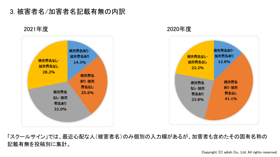 3. 被害者名/加害者名記載有無の内訳―加害者名のみ記載されたSOSが増加