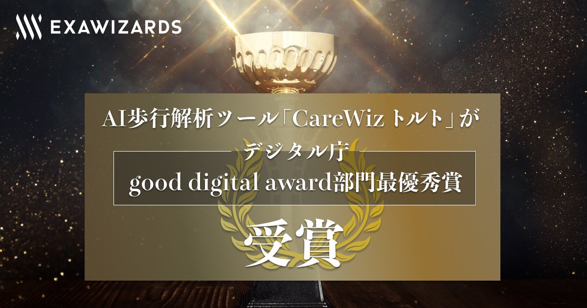 株式会社エクサウィザーズ(東京都港区、代表取締役社長:石山 洸、以下エクサウィザーズ)の子会社のエクサホームケア(東京都港区、代表取締役社長:石野悟史、以下エクサホームケア)のAI歩行解析ツールの「CareWiz トルト」が、デジタル庁が開催した令和4年度「good digital award」の部門最優秀賞を受賞しました。「誰一人取り残されない、人に優しいデジタル化」の基準において、9部門のうち健康/医療/介護の部門で最も秀でていると選出されました。