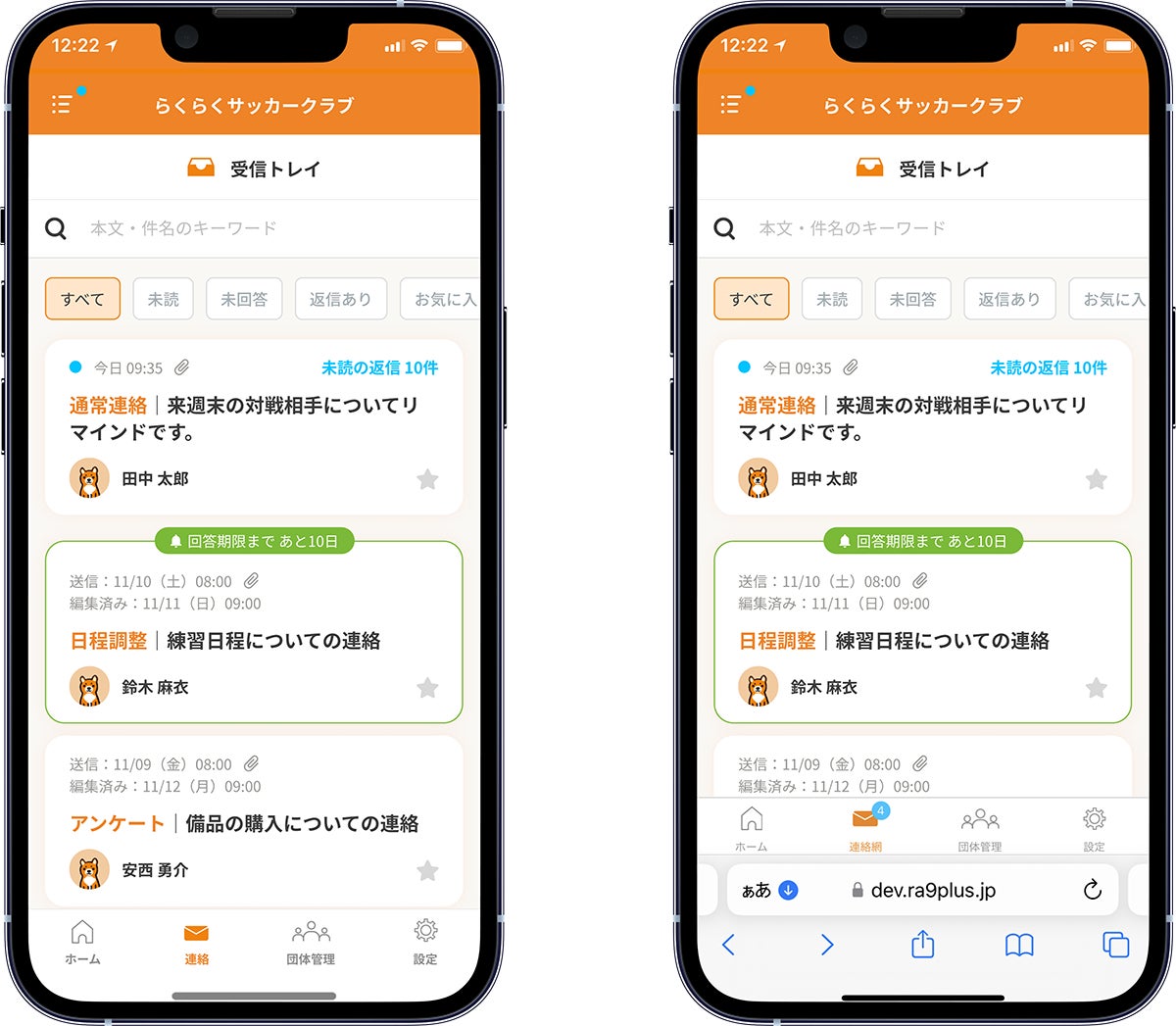 「らくらく連絡網」の基本的な機能はそのまま引き継ぎつつ、読了確認機能や返信機能の改良や設計の見直しなど、年代問わず様々なユーザーにお使いいただけるよう開発しました。