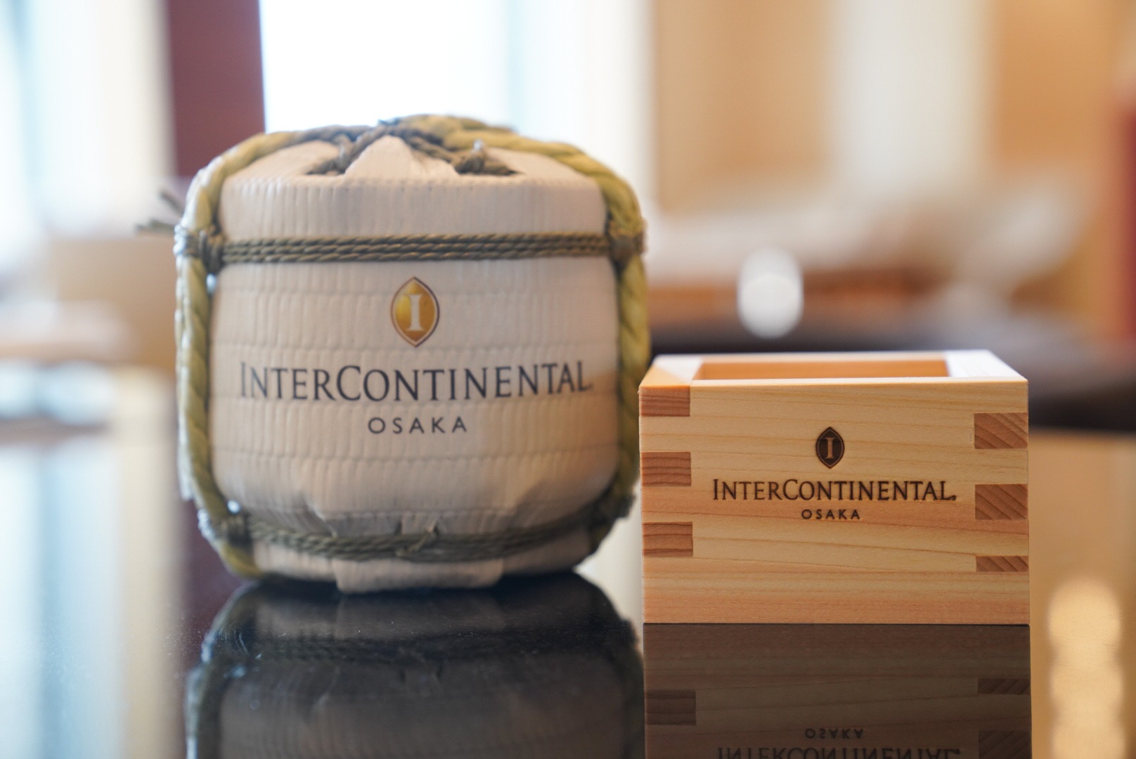 300mlの日本酒と木枡がセットとなったインターコンチネンタルホテル大阪オリジナル日本酒セットを販売しております。