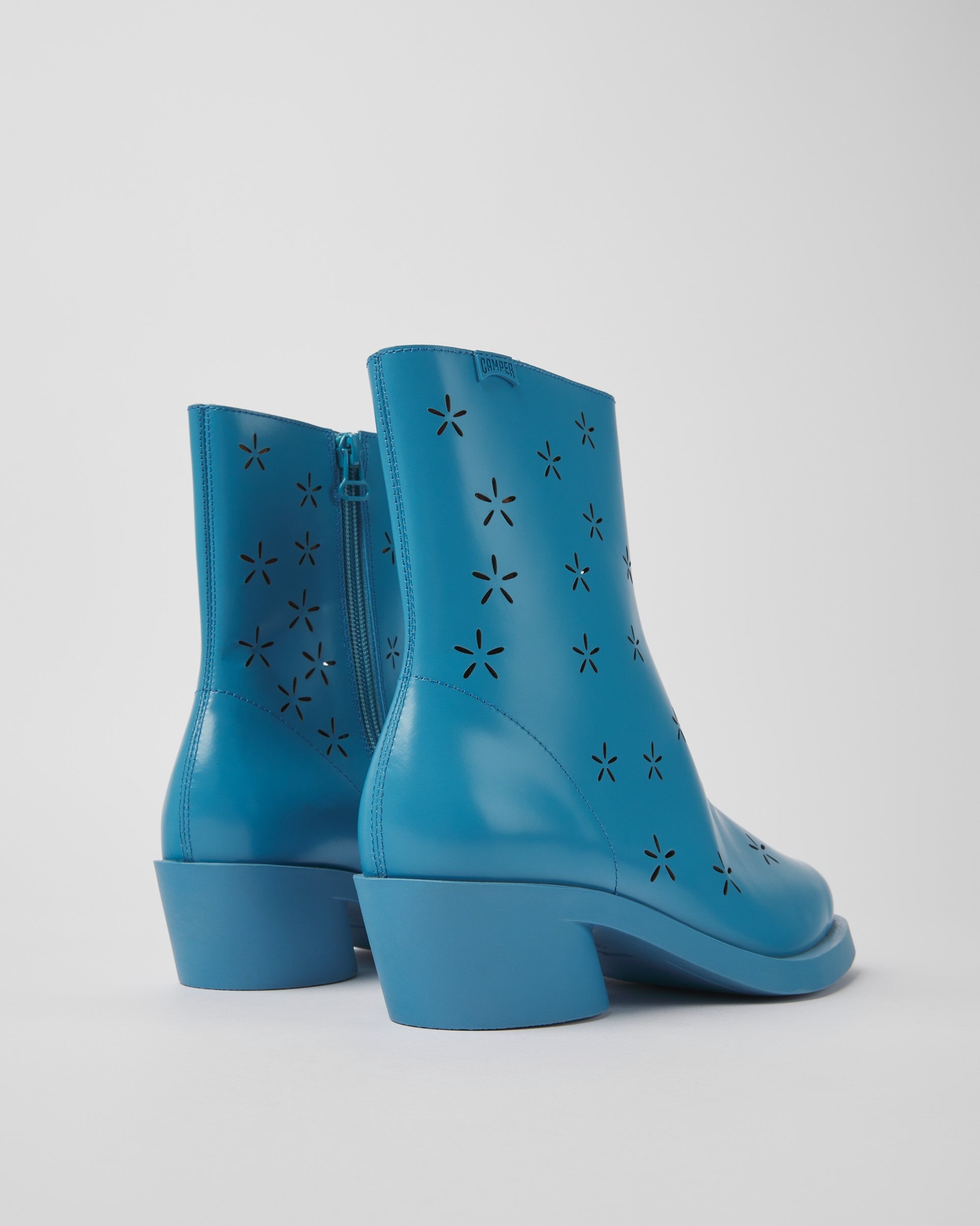 2022年にデビューした新ライン「BONNIE(ボニー)」は、時代を超えて愛されるカウボーイブーツを、カンペールらしいユーモアで再解釈して、力強いボリューム感と丸みを帯びたポインテッドトゥの現代版テキサスブーツに仕上げています。今シーズンは、レザーをカットアウトしたフラワーデザインのショートブーツとミュールが初登場。