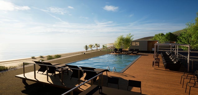 南国をイメージさせる開放的なその景観とゆとりあるスペースは人々に潤いを与え、心身のリフレッシュや憩いの場となっております。施設内にインフィニティプールとテラスを設置し、泳ぐことは勿論のこと、テラス席で海を眺めながらカフェを楽しむこともできます。