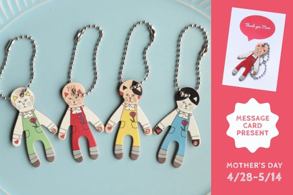 WEBショップでご購入のお客様限定で、母の日の贈り物と備考欄に入れていただいた方には母の日のメッセージカード入りのキーパーソン君「猫の花屋さん」をプレゼント。4/26~5/14まで。※色はおまかせなります。