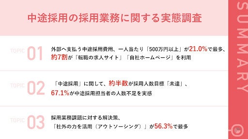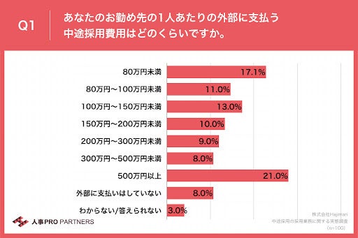 - 外部へ支払う中途採用費用、一人当たり「500万円以上」が21.0%で最多