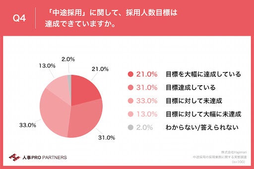 - 「中途採用」に関して、約半数が採用人数目標「未達」