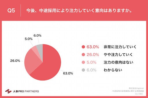 - 89%が「今後、中途採用により注力する」意向あり