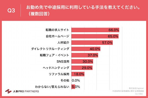 あらゆる人の自立を創造する企業、株式会社Hajimari(所在地:東京都渋谷区、代表取締役:木村 直人)は、運営する即戦力人事紹介サービス「人事プロパートナーズ」にて、中途採用を年間10名以上実施している会社の人事部長・人事役員・中途採用責任者100名に対し、中途採用の採用業務に関する実態調査を実施し、結果を公開いたしました。