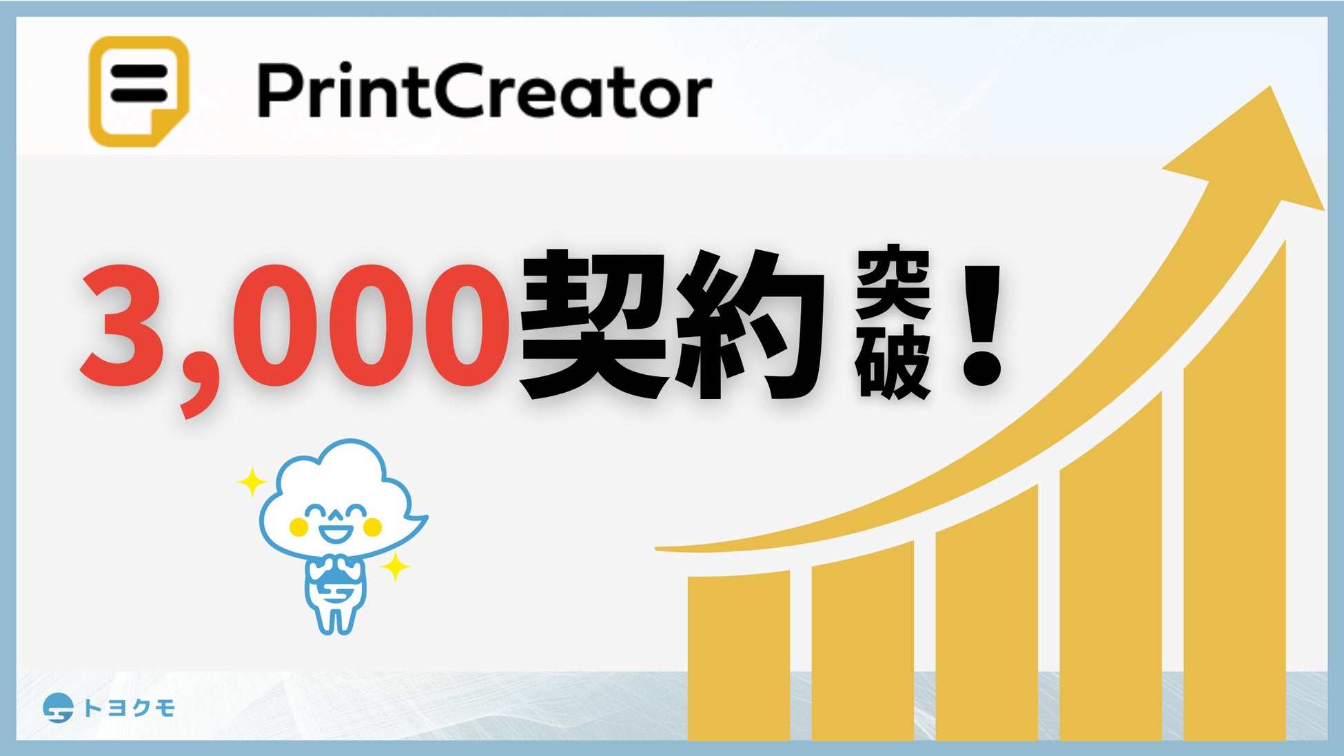 PrintCreatorの有償契約数が3,000を突破いたしました。ご契約いただきましたお客様、弊社サービスをお取り扱いいただきましたパートナー様に心より感謝申し上げます。