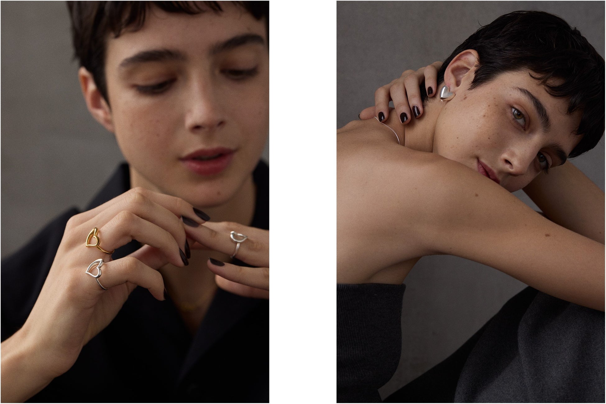 今回のコラボアイテムは、ハートをモチーフにしたネックレス・イヤリング・リングの3型と、重ね着けしやすいように長さの調節ができる“Love”のロゴがあしらわれた「Love Charm Necklace」の計4型です。