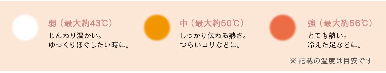 温度 :弱(最大約43℃)・中(最大約50℃)・強(最大約56℃)