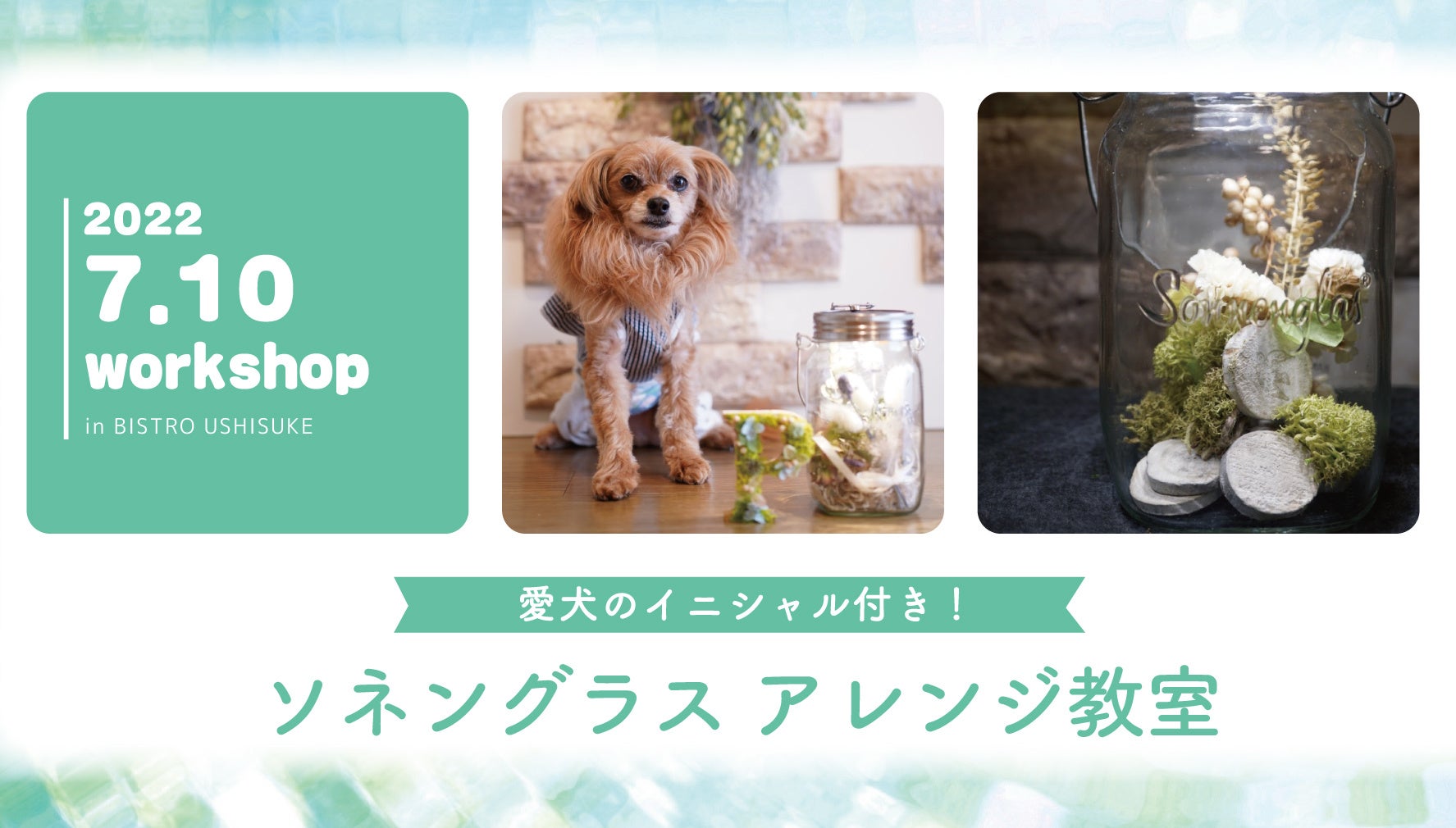 このたび、ペット同飯™可焼肉店「うしすけ」などを東京・神奈川を中心に展開する株式会社With Pet Family(本社:東京都大田区、代表取締役:𠮷田 達也)は、2022年7月10日(日)に当社運営店舗「BISTROうしすけ」にて、ワークショップイベント『ソネングラス アレンジ教室』を開催いたします。