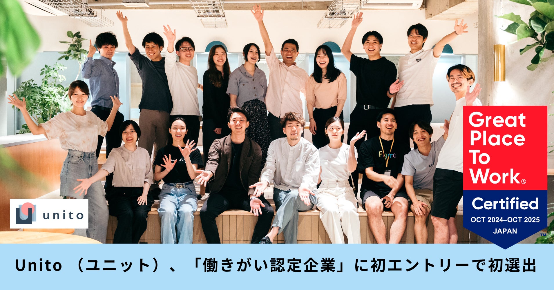 Unito(ユニット)、世界150カ国10,000社超の企業調査を行うGPTW®ジャパンが認定する、2025年版「働きがい認定企業」に初エントリーで選出!