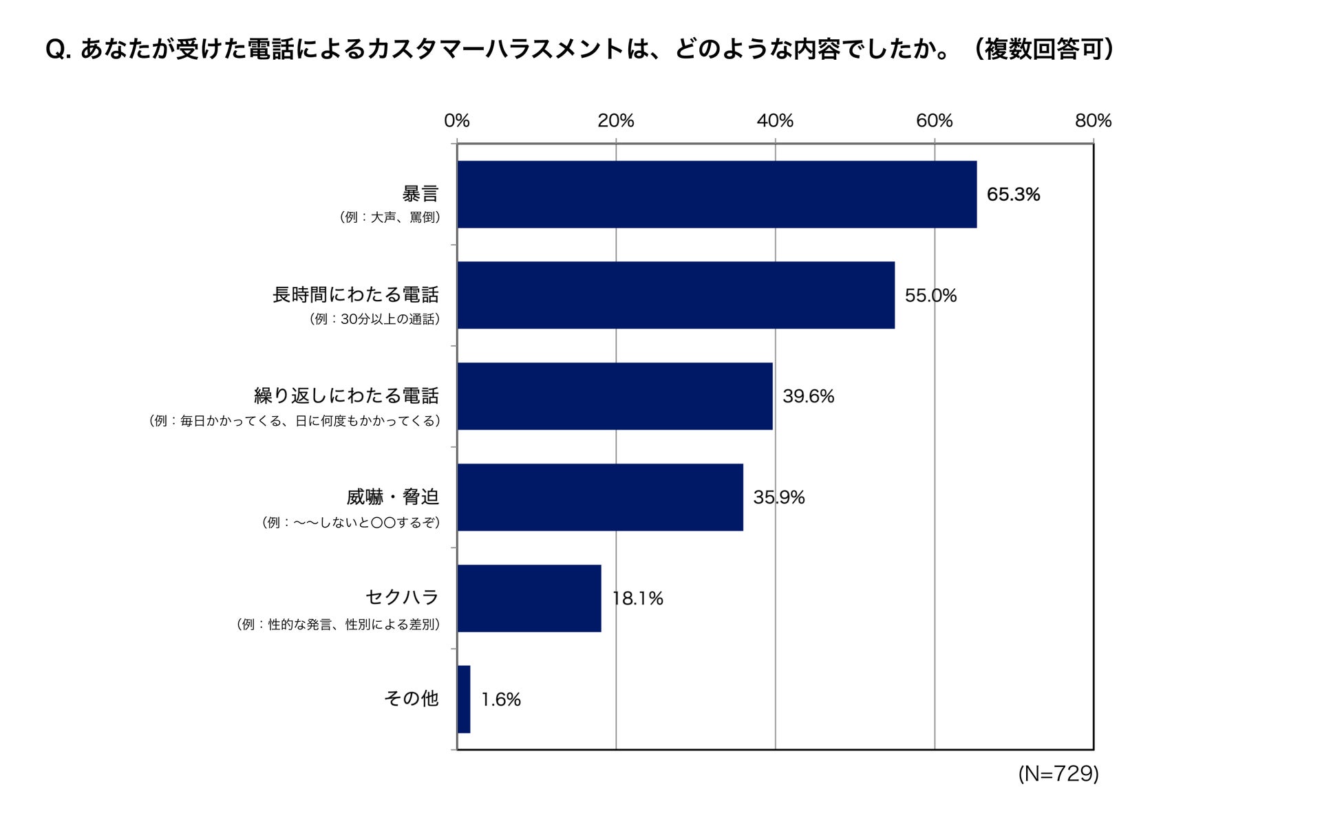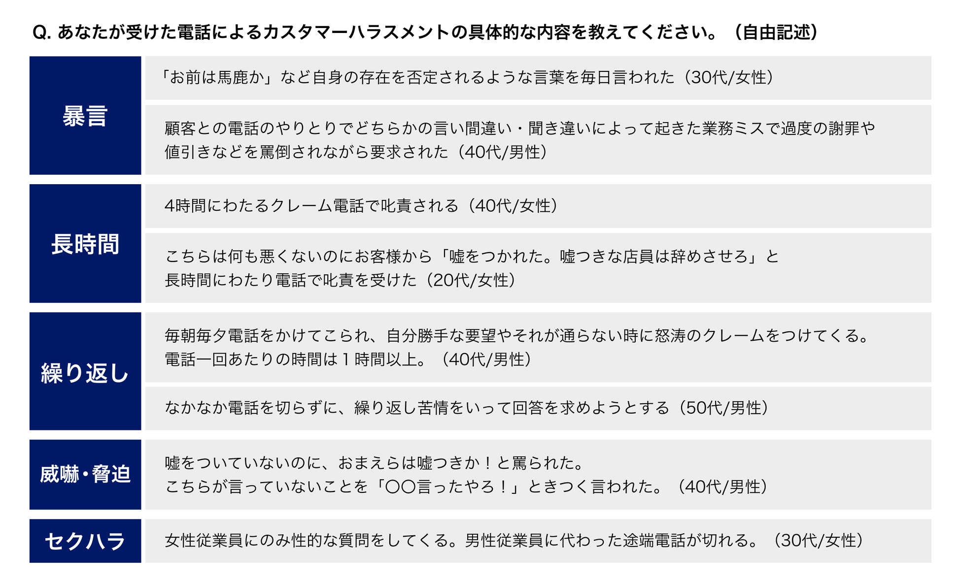 ◉ 電話のカスハラ被害1位「暴言」、2位「長時間にわたる電話」具体的な被害例も