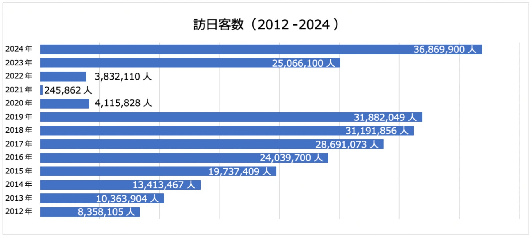 円安を追い風にインバウンド市場は大幅な回復とともに、2025年の訪日客数は引き続き過去最高記録を更新する可能性があり、さらなる市場の拡大が見込まれます。