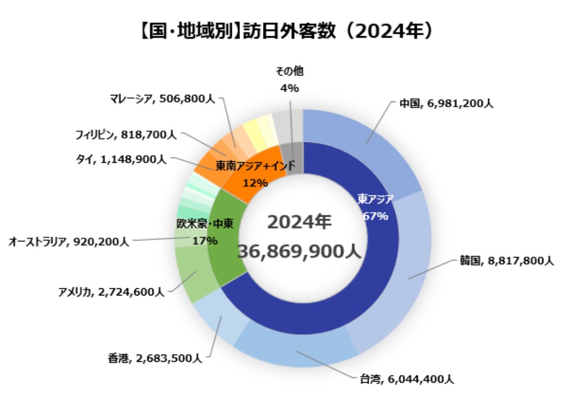 グローバルマーケティング事業(※)を展開しているアウンコンサルティング株式会社(東証スタンダード市場:2459、本社:東京都千代田区、代表取締役CEO:信太明、以下「アウンコンサルティング」)はこの度、2024年の訪日外国人の年間動向調査結果と、2025年の予測をまとめましたのでお知らせいたします。