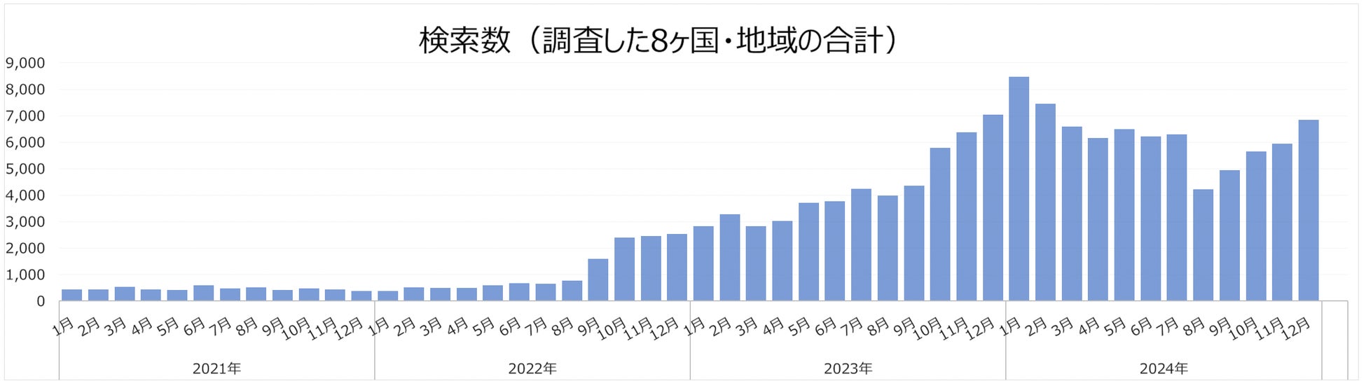 2024年は円安が追い風となり訪日客や消費額が過去最高につながったことが、これらの検索動向からもうかがえます。