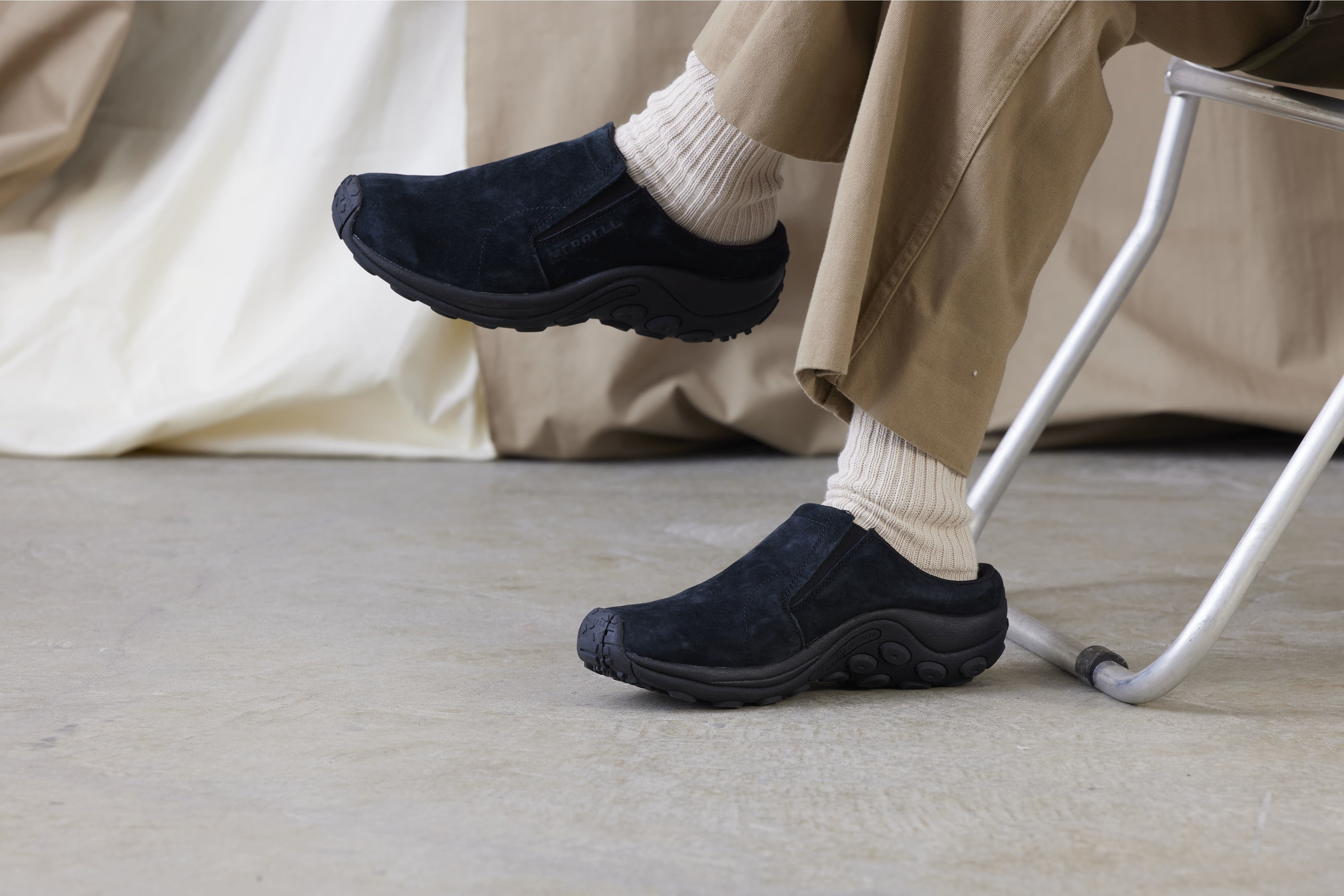 MERRELL「JUNGLE MOC」シリーズで最もEASY ON/OFFな1足!アウトドアコンフォートを体現する、撥水ピッグスキンスエードの洗練されたスライドシューズ「JUNGLE SLIDE」