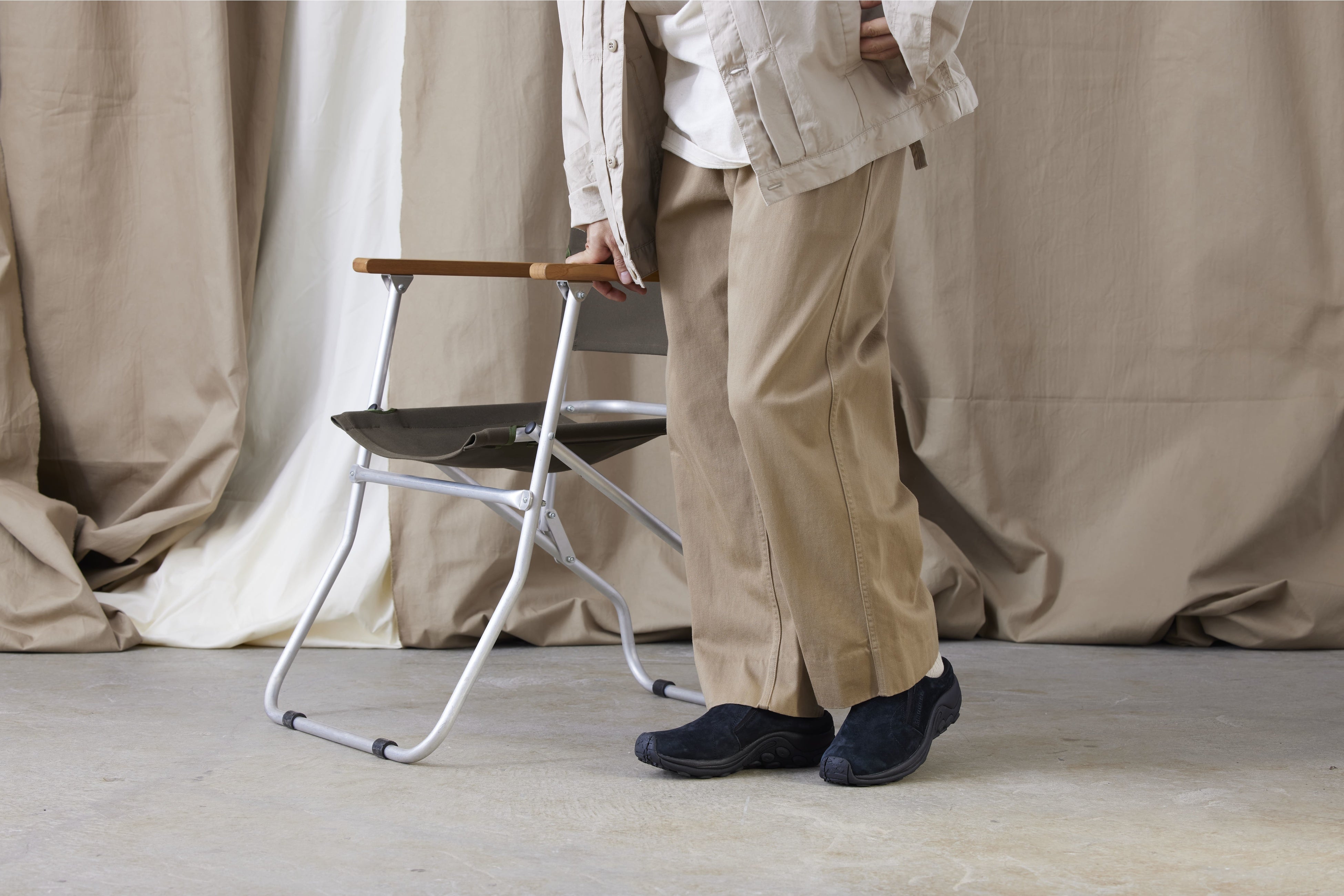 デザインは従来の「JUNGLE MOC」と同様、上質な素材感が特徴の撥水ピッグスキンスエードを採用したことで、アウトドアライクながらも上品さを演出する一足です。また、スライドシューズの特徴とも言える”踵を見せる構造”によって、ソックスとの合わせ方で様々なイメージの履きこなしが可能です。