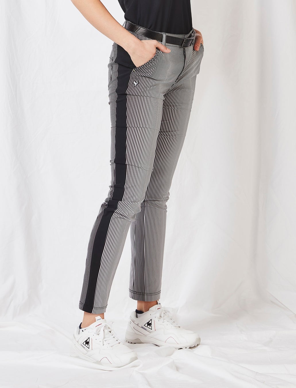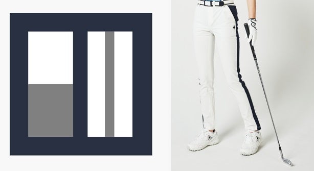 錯視とは、視覚の錯覚のことを指し、形・大きさ・長さなどが、ある条件や要因のために実際とは違ったものとして知覚されることを言います。錯視の種類は様々ありますが、『le coq sportif』では、その錯視効果を活用したパターンやカラーリング、カッティングの採用により、脚を細く、長く、美しく見せることができるパンツを開発しました。