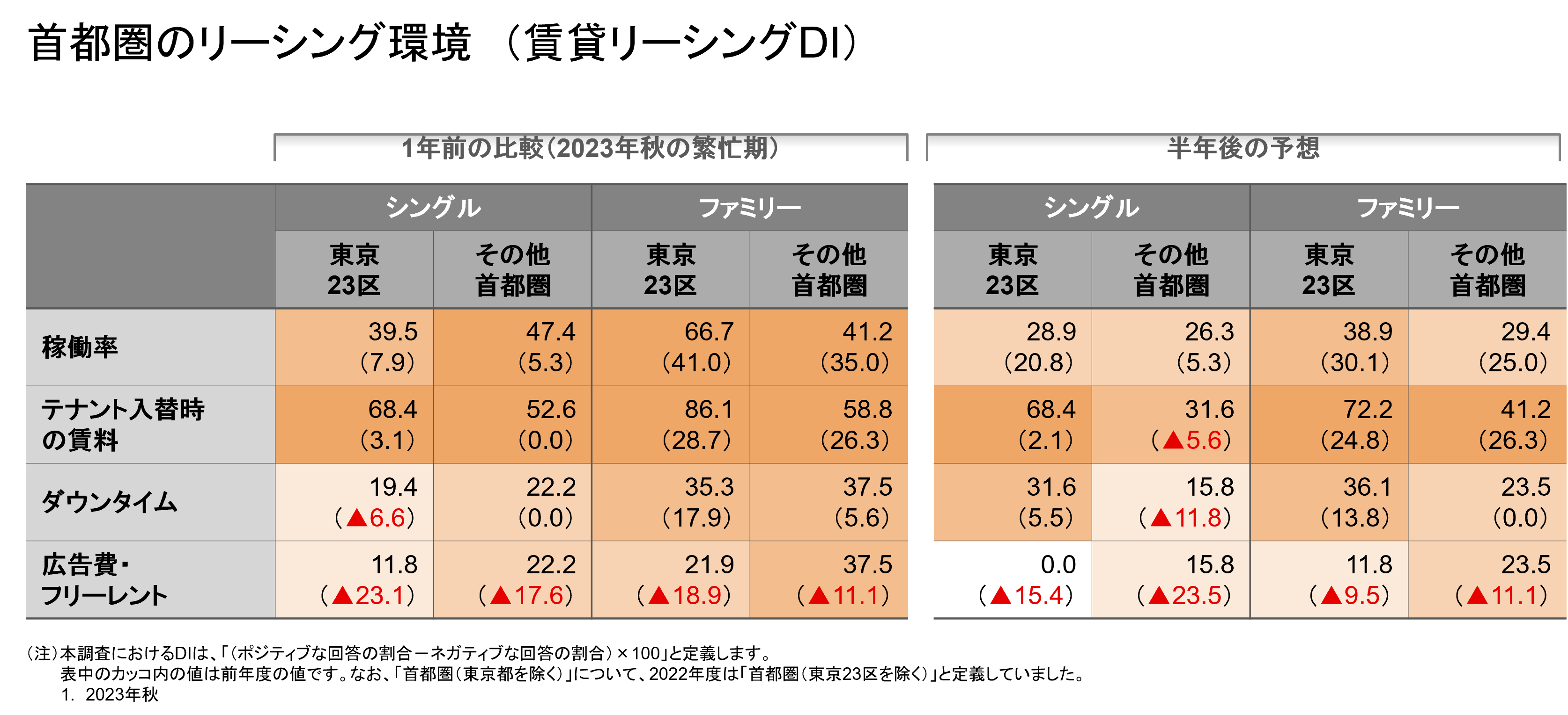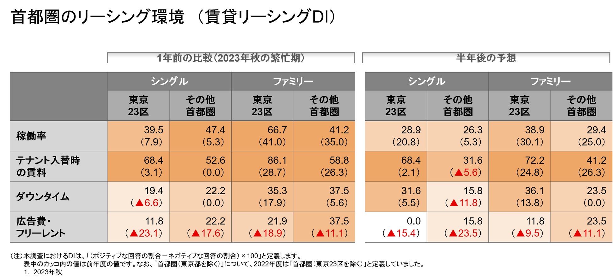 首都圏ではシングル・ファミリーともに昨年調査よりも大きく改善。