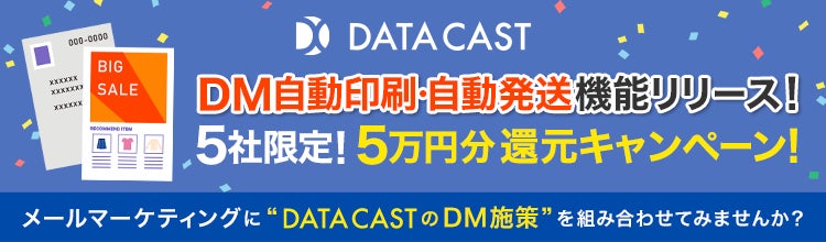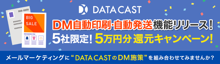 5社限定!ご利用料金50,000円分まで無料でDATA CAST DM連携オプションをご利用いただけます。