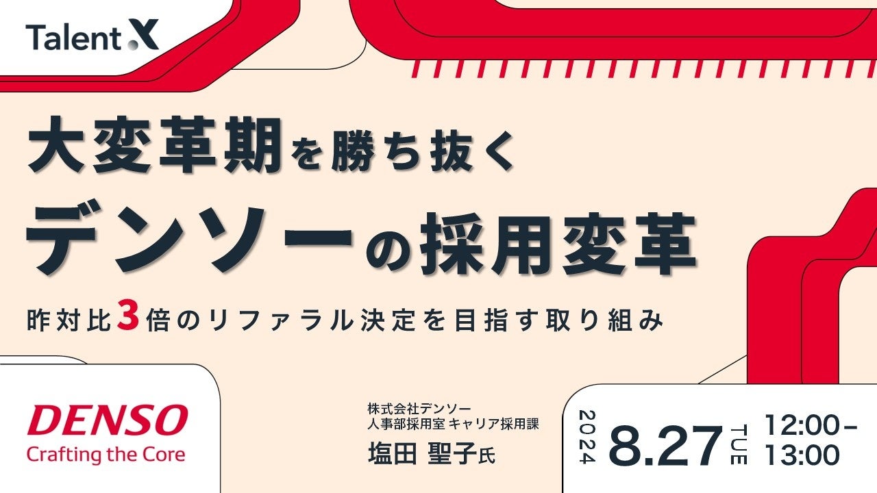 <採用マーケティングセミナー開催>大変革期を勝ち抜くデンソーの採用変革~昨対比3倍のリファラル決定を目指す取り組みとは~