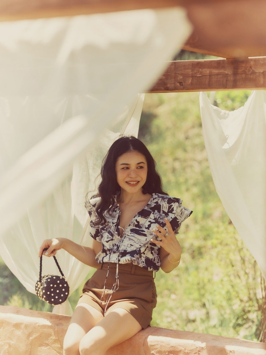 旅に出るときに全部がシンプルなコットンのトップスだとつまらない。1枚はデコラティブで遊びのあるアイテムを持っていくのもとてもおすすめです。"華をつくってくれる"そんな印象的なアイテムを持っていくと、何気ない時間もちょっと心が弾んでしまいます。