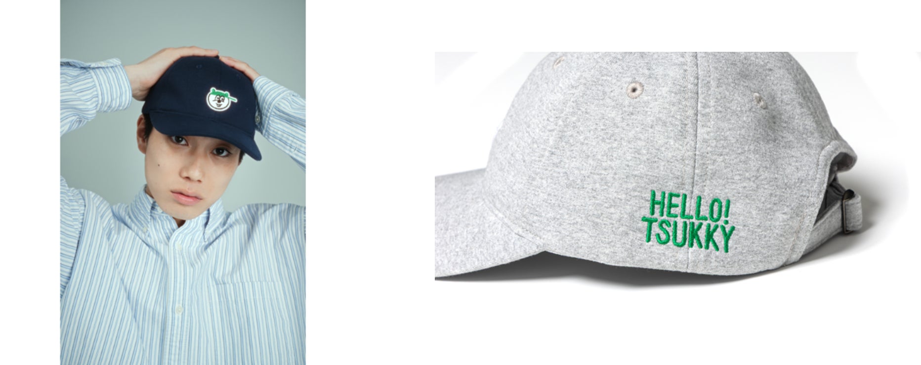 “フロントにツッキーのワッペン、サイドに「HELLO! TSUKKY」の刺繍だよ。”