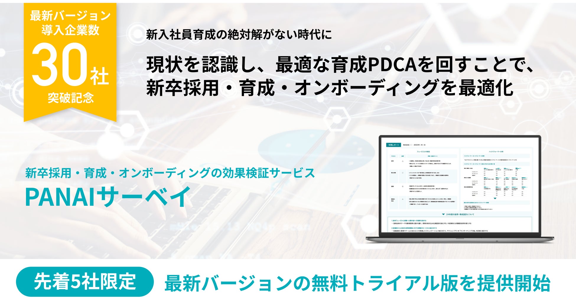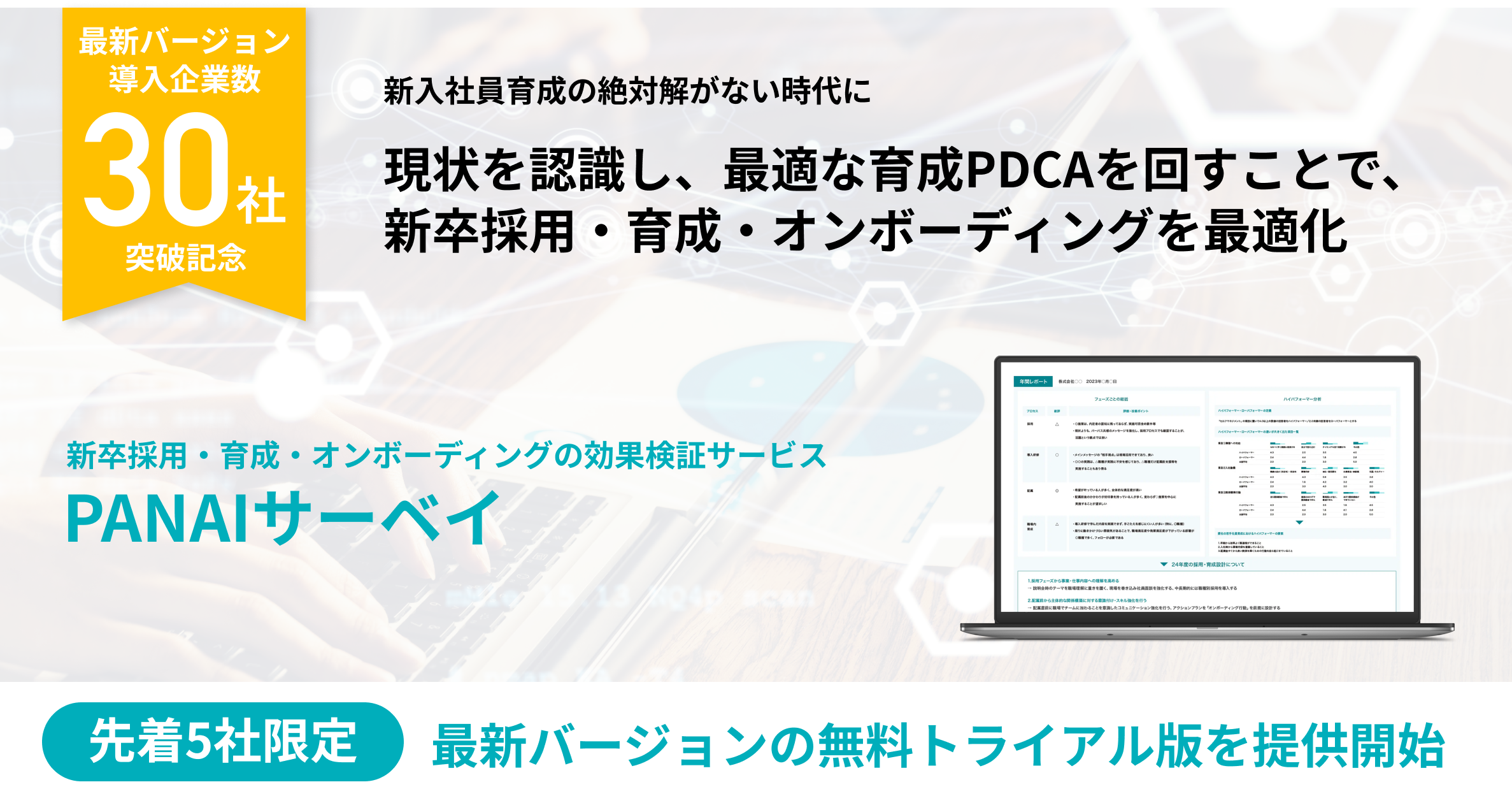新卒採用・若手育成の効果検証サービス『PANAIサーベイ』アップデート版を先着5社限定で無料提供開始